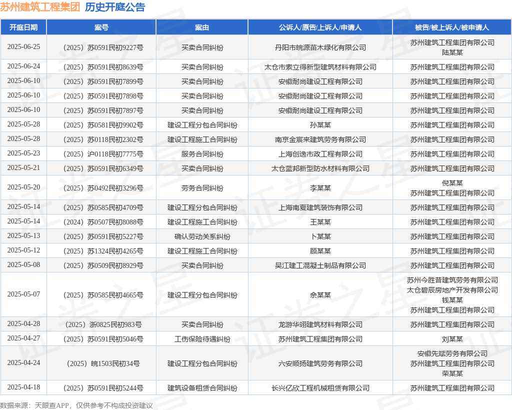 本站消息,根据天眼查APP显示,近日公布了一则苏州建筑工程集团有限公司作为被告/被上诉人的开庭公告,详细内容如下:
